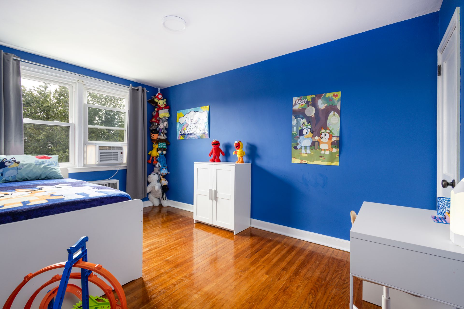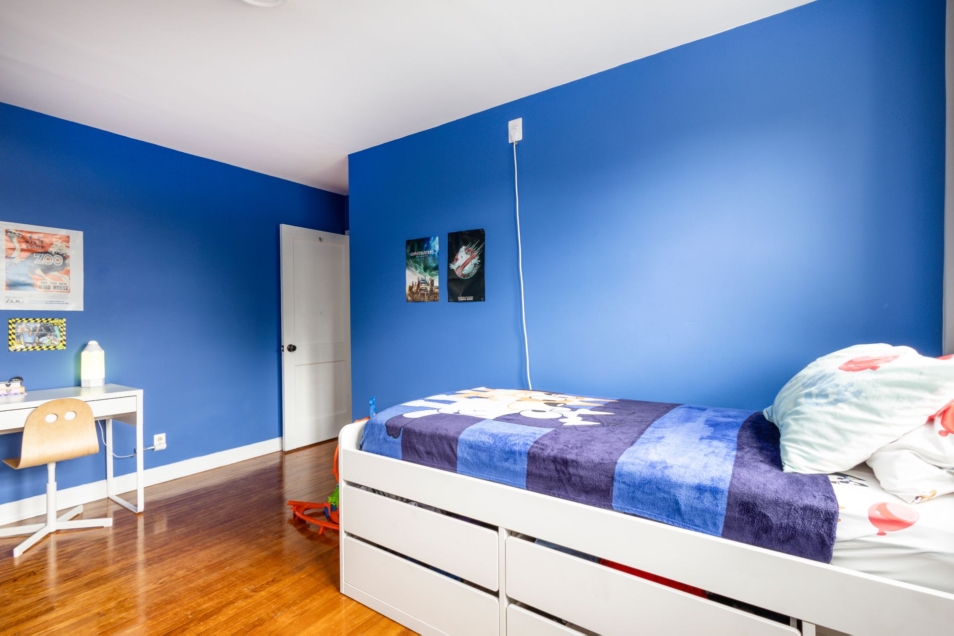 Upstairs, you’ll find three bright bedrooms, all with ample closet space. The front bedroom stands out with its ceiling fan and walk-in closet, while the back bedroom offers a fun surprise: a built-in climbing wall! The updated three-piece hall bathroom features a skylight that floods the tub area with natural light.